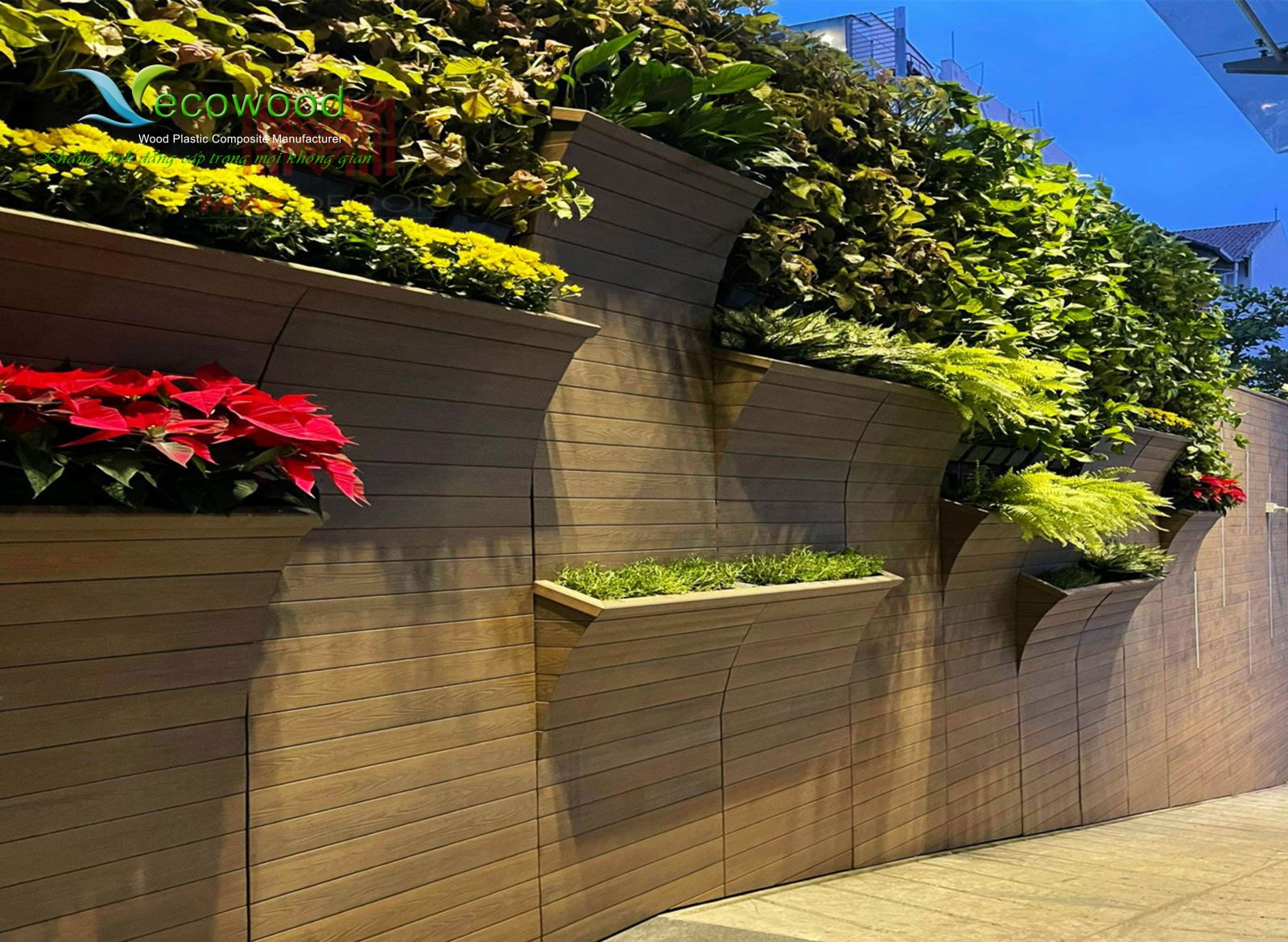 Khi nói đến những thương hiệu sản xuất gỗ nhựa ngoài trời tốt nhất hiện nay, không thể không nhắc đến Ecowood. Được sản xuất trên dây chuyền công nghệ tiên tiến nhất hiện nay. Ecowood Composite 2 lớp là sản phẩm tiên tiến nhất hiện nay, sản phẩm được kết hợp từ 60% gỗ tự nhiên nguyên sinh có độ cứng cao + 30% nhựa uPVC + 10% lớp bảo vệ bề mặt & phụ gia an toàn. Ecowood Composite 2 lớp là sản phẩm gỗ nhựa duy nhất có bề mặt phủ lớp bảo vệ bằng nhựa cao cấp PVDF/ASA và UV ngoài trời, kết hợp cùng hạt màu AkzoNobel tốt nhất thế giới. Sản phẩm có bề mặt vân gỗ chân thật như gỗ tự nhiên, chống bay màu hiệu quả, đạt tỷ lệ giữ màu sắc đến 95% trong suốt quá trình sử dụng, thời gian bảo hành 10 năm, thời gian sử dụng trên 30 năm. Sản phẩm đạt tiêu chuẩn quốc tếvề an toàn và thân thiện với môi trường, có thể đáp ứng cho tất cả các giải pháp sáng tạo trong thiết kế kiến trúc ngoại thất với khả năng chống chọi mọi thời tiết khắc nhiệt nhất.